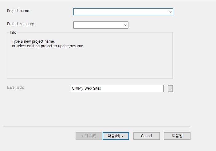 프로젝트 명과 저장 장소를 입력